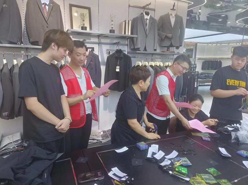 隨后,黨員們深入錢塘衣城各商戶,發(fā)放防汛知識(shí)手冊(cè)。他們結(jié)合“7·20”特大暴雨真實(shí)案例,向商戶現(xiàn)場(chǎng)講解預(yù)警信號(hào)含義、暴雨洪澇危害及自救互救方法,提醒大家務(wù)必增強(qiáng)汛期安全意識(shí),提前做好防范措施。
